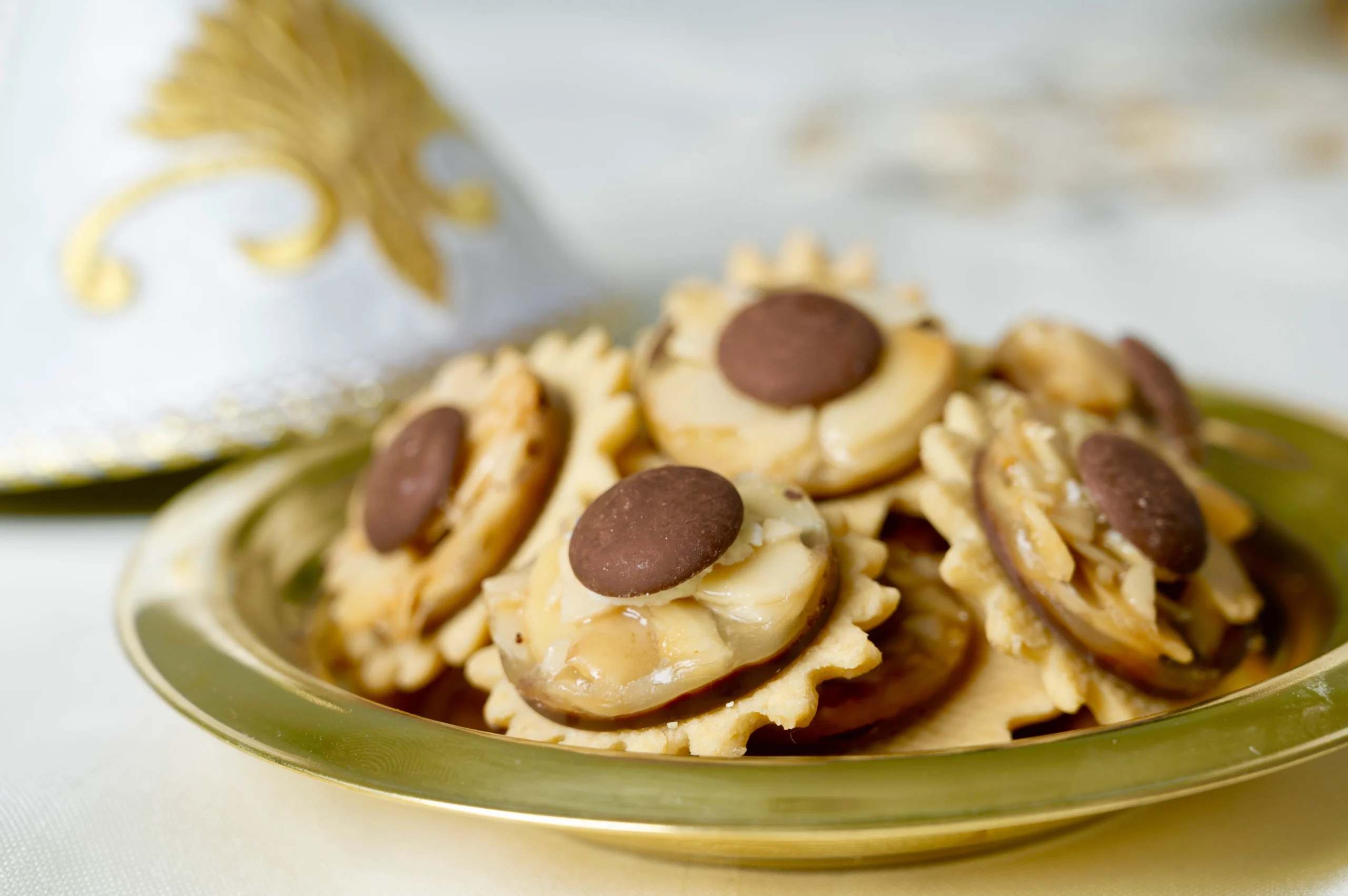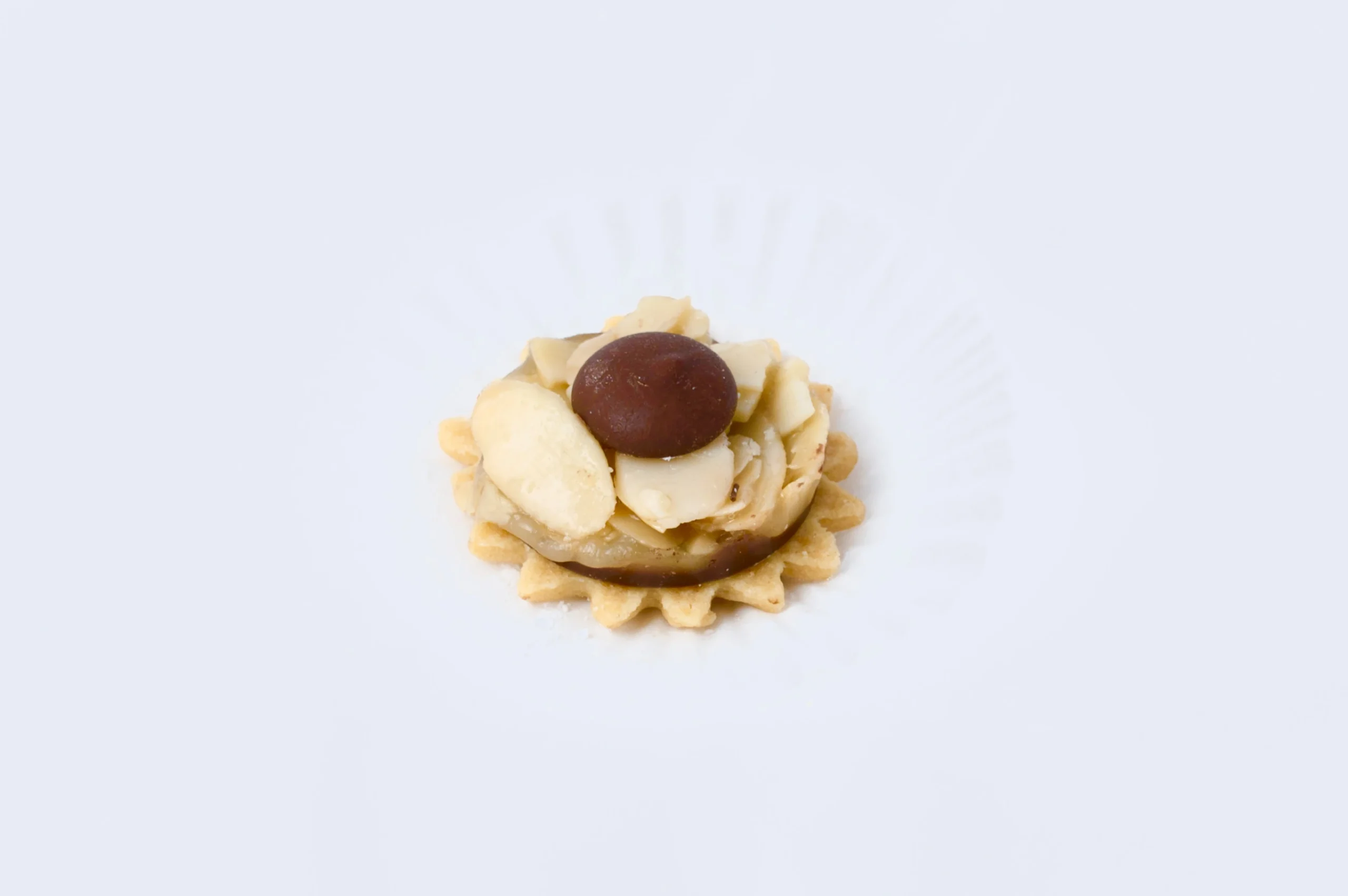 A tender, buttery sablé cookie filled with crunchy almond nougat and finished with a smooth layer of rich chocolate. A perfect harmony of nutty sweetness and deep chocolate flavor.