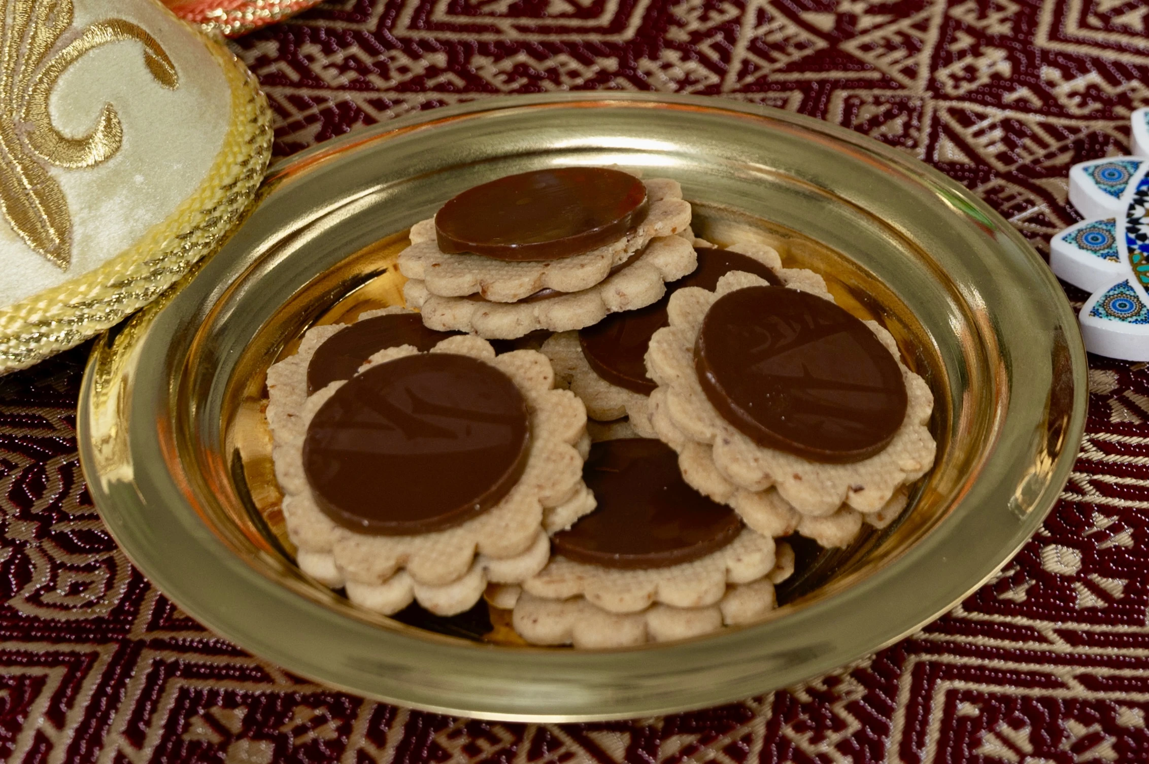 Buttery, crumbly sablé cookies studded with crunchy roasted almonds and rich dark chocolate chunks. A perfect blend of nutty and bittersweet flavors that melt in your mouth.