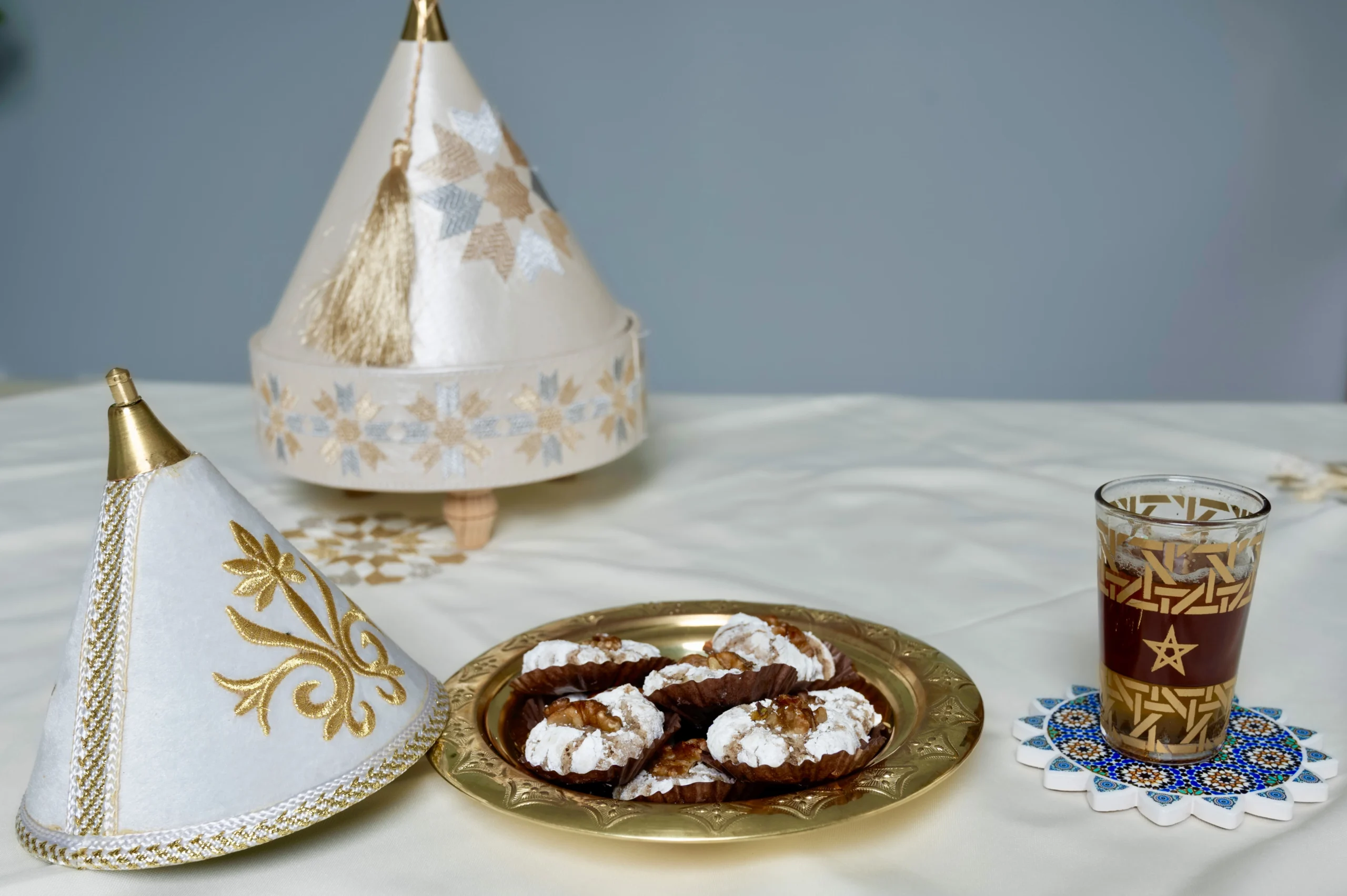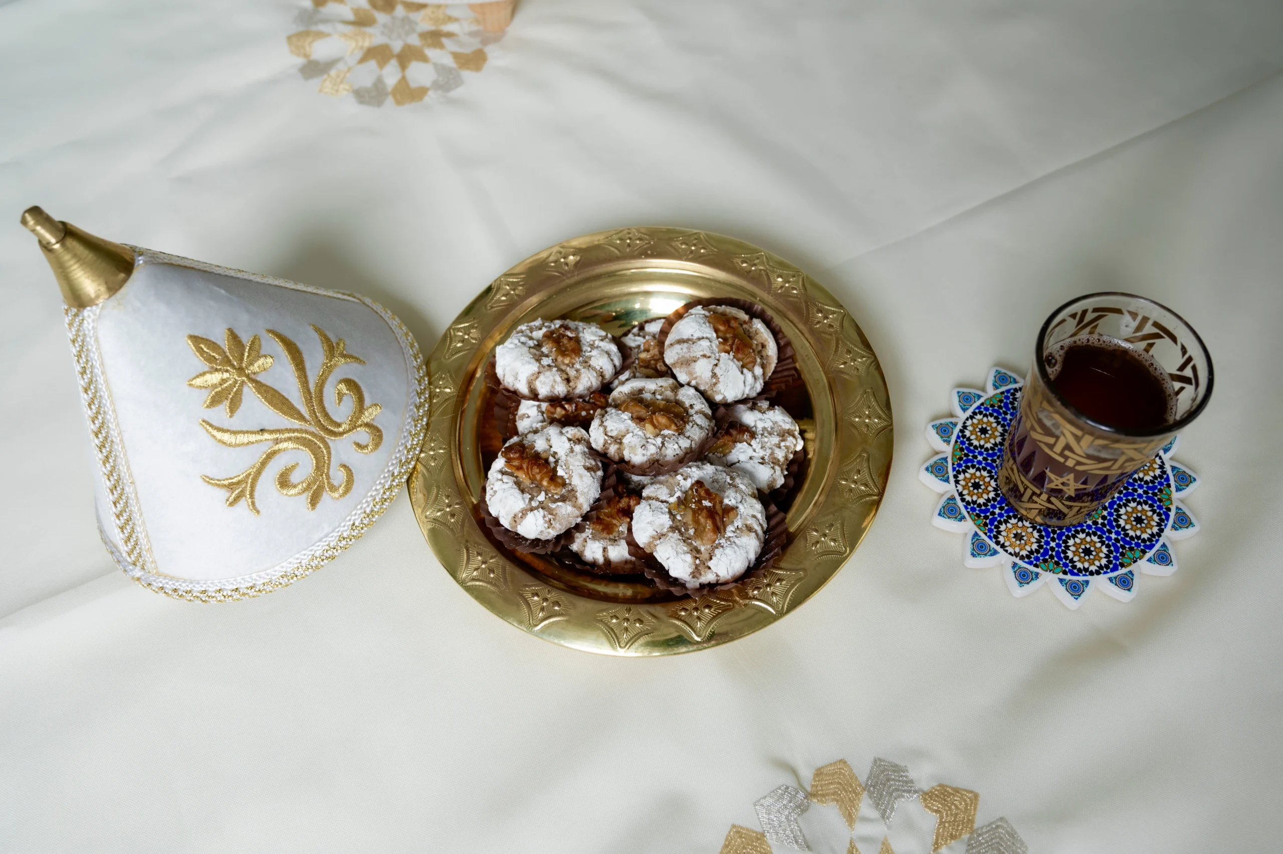 A tender, melt-in-the-mouth Moroccan cookie made with finely ground walnuts. Lightly crackled on the outside and soft within, it offers a rich, nutty flavor and a delicate sweetness—perfect with tea or coffee.